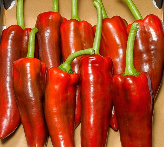 • Καρπός μακρύς, ευθύς, λαμπερού κόκκινου χρώματος διαστάσεων 4-5 x 23 cm